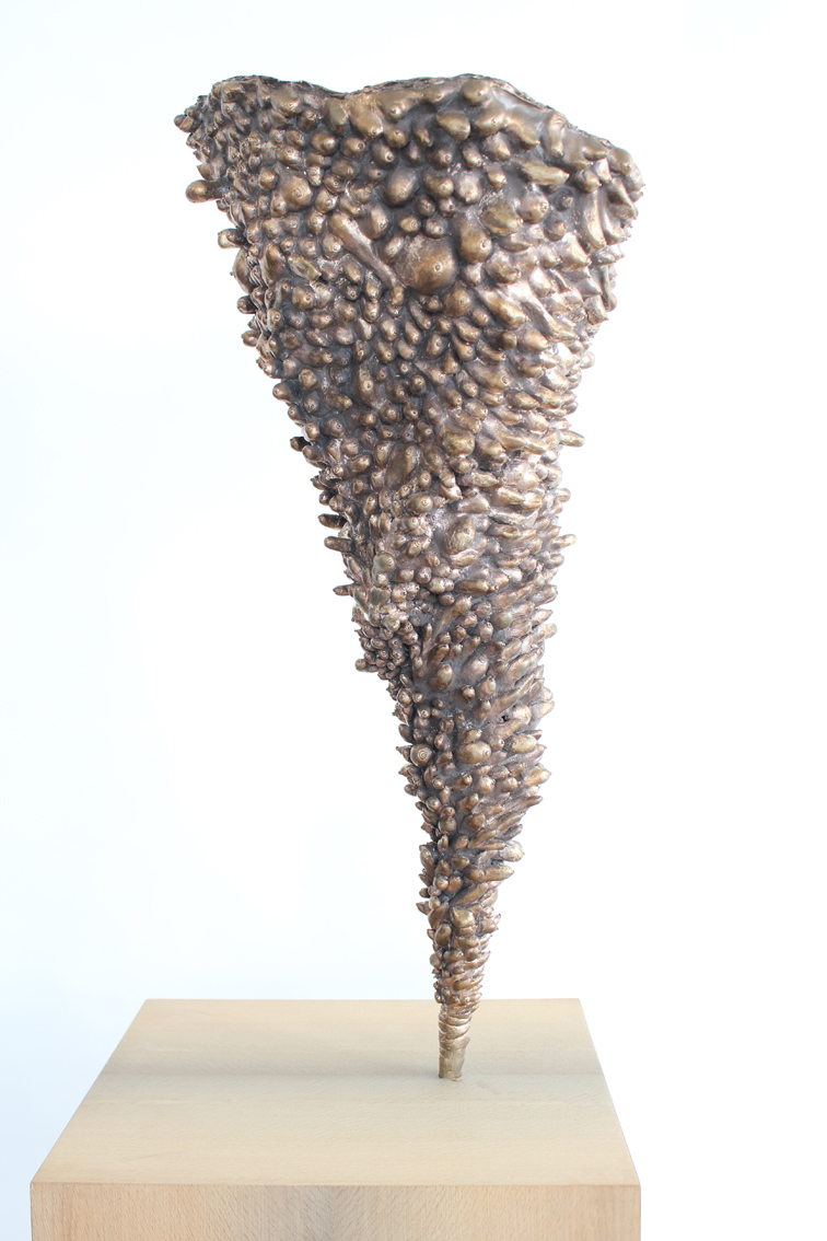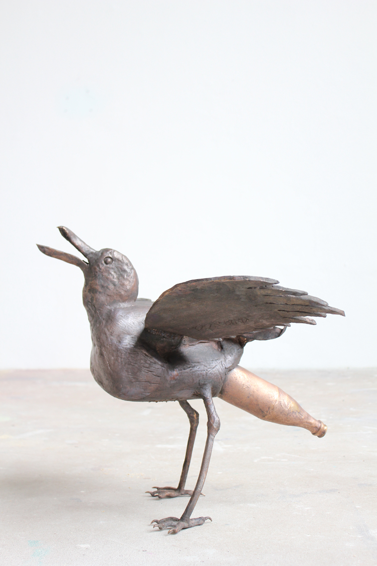 In his drawings and objects Matti Schulz comments on current affairs. In his mostly reduced ink drawings that are concentrating on the essential brute comical punch lines such as »Understanding homicide and doing it yourself« or »He has been turning sausage since the turnabout«. If colour enters the sheet, the works are often drawn denser and thus seem more narrative. Some ideas for images are triggered by media headlines; some drawings are being worked on for quite some time until the fitting sarcastic wording has been found and the bitter punch line has been put into a nutshell. A few objects complement the exhibition such as a cast in bronze »Tit tornado«, that is flanked by »Volcano eruption with tit lava«.